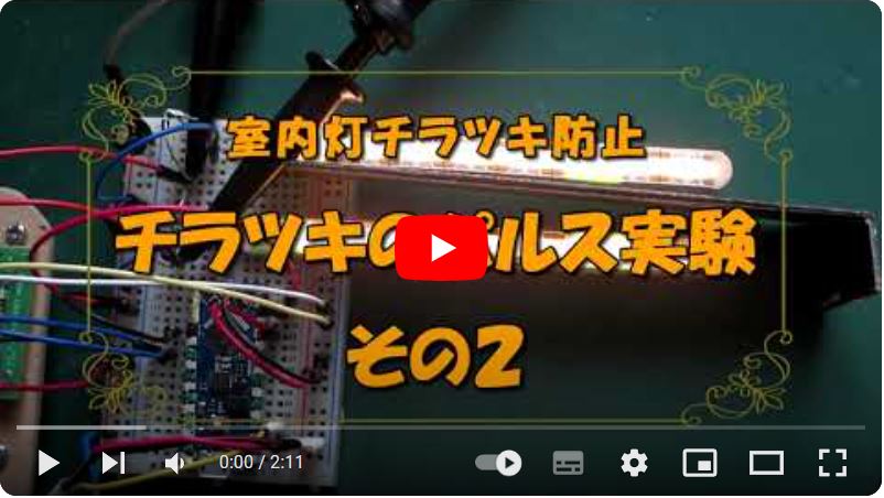 チラツキに関するパルス実験の準備ができたので、まずは、様子を観察することにした。遮断時間の変化や抵抗とCRDの違いなどを確かめてみた。