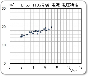バンダイ製 Bトレイン 20系ブルートレイン・EF65 (6両セット) EF65-1136号機を測定しました。 動力台車は、KATO製 小型車両用動力ユニット 通勤電車1 No.51 ( 11-105〉を装着しています。車輪は4軸中の2軸が駆動軸です。また、測定前に切れかかっていたトラクションタイヤを、KATO Z01A4012 トラクションタイヤ Φ4×1mm に交換しました。