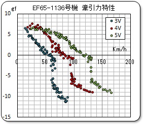 上記の、EF61-1号機とはおなじモデルの動力ユニットを使用しているのですが、牽引力特性のパターンがかなり異なっています。特に制動領域でのパターンの違いが理解出ていません。