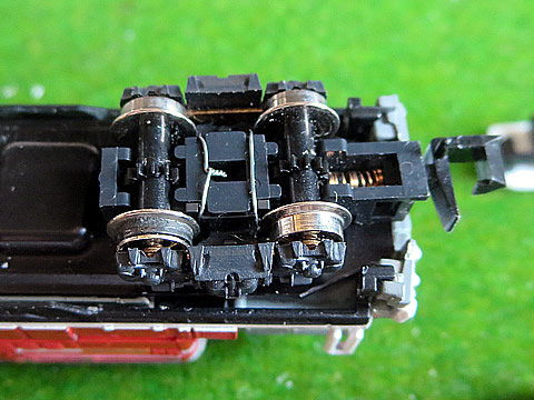 バンダイ製 Bトレイン DD51形ディーゼル機関車・標準色 DD51-1029号機を測定しました。 動力台車は、KATO製 小型車両用動力ユニット 通勤電車1 ( 11-105〉を装着しています。車輪は4軸中の2軸が駆動軸です。