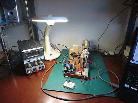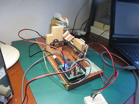 DCモータのブレーキ制御方法について、実際の実験装置を使って確かめる事にしよう。そして、装置の工作も完了したので予備実験を実施した。