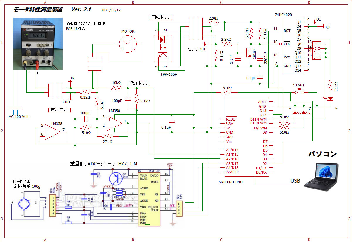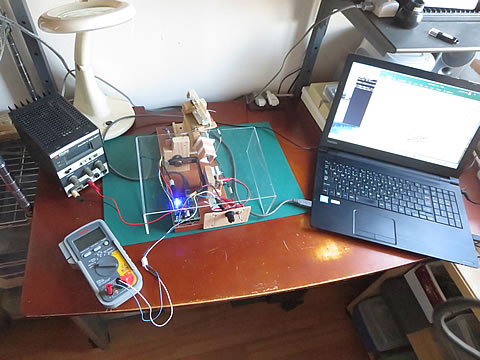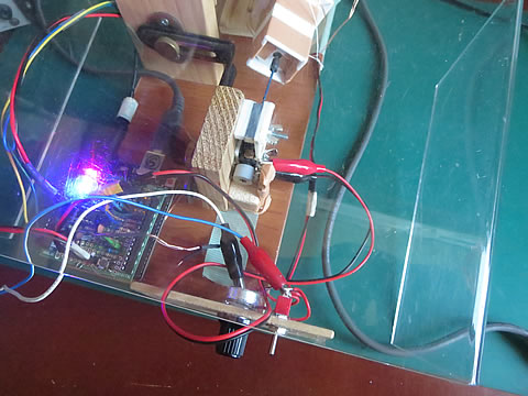 実験装置は先回報告したように、以前に工作したモータ