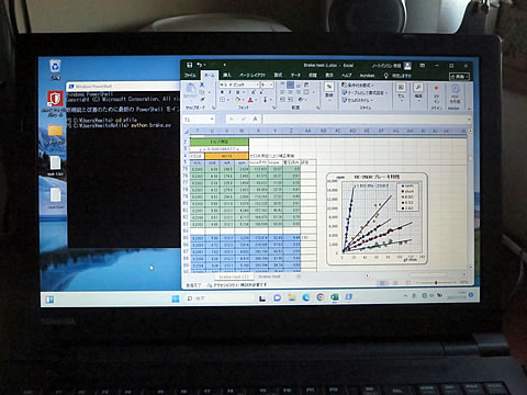 とりあえずブレーキ特性としてのデータを取得する事ができた。そして、このデータから何を読み取るのか、摩擦損失速度係数を考慮した解析方法を整理しなおしてから検討する事にしよう。