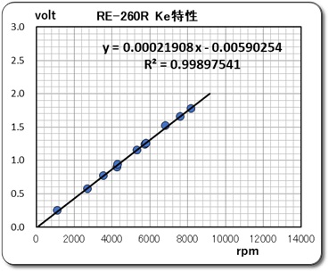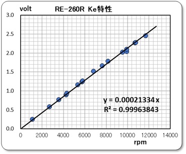 Ke = 0.000213 volt/rpm または、 Ke = 0.000219 volt/rpm