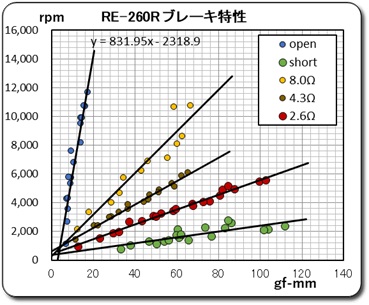 HOME >> 鉄道模型実験室 > DCモータのブレーキ特性 RE-260RAのブレーキ特性