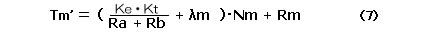 となります。また、モータ軸に関しては、外部から軸を回転数 Nm で回転させるには軸トルク Tm' が必要となるが、このトルクは、回転子を回すためのトルク Tm に加え、軸の摩擦損失に抗する必要があります。この摩擦抵抗は、今までの実験データより、固定項と速度項にて近似できるます。固定項を軸摩擦トルク Rm として、摩擦損失速度係数λm とすると、