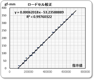 y = 0.00062018 x (単位: gf-mm )