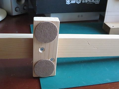 また、レール台の脚には、床を傷つけないように上左の写真に示すようにフェルトを貼り付けました。