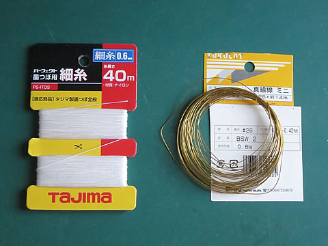 まず、0.45mmの真鍮線を最上部にピンと張ります。終端は太めの銅線を使って捩じりながら止めています。この捩じり具合で張力を与えました。