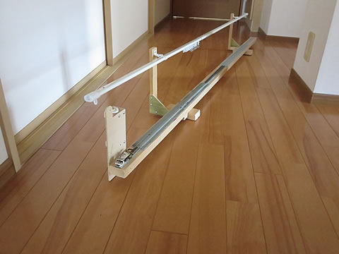 そして、カーテンレールを支持する2脚の支柱として木ネジを使って組付けました。