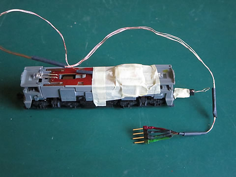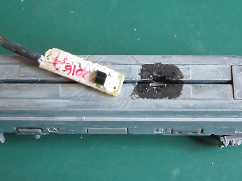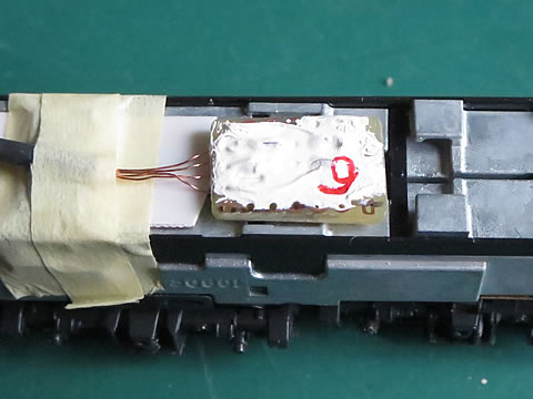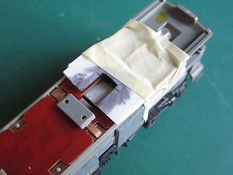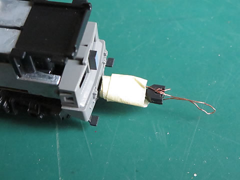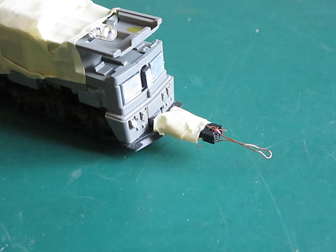その上に、No.6号のセンサユニットを取り付けた。カプラーも紙テープでグルグル巻きして連結した。