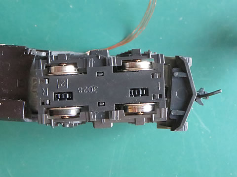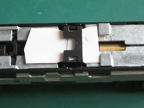 センサユニットとカプラーを装着した状態を下左にしめす。ここで、思い出したが、ボディーを取り外した分の重さを補充することにした。
