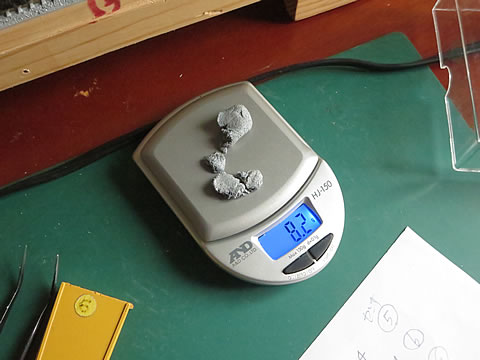 補充量、即ち、89.7g - 81.5g = 8.2g を水草の重りを集めて、車体上部の中心位置に張り付けた。