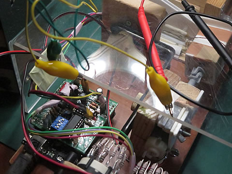 シールドが完成したので、Arduino に取り付け、変更したI/Oポートの番号などを修正したスケッチを書込みました。そして、まずは機能テストを兼ねて駆動側回路の電圧と電流の較正を実施することにした。