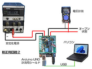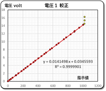 すると、広範囲な電圧の較正が可能と判断して、必要な電圧範囲が充分に取れる安定化電源を使用して、駆動部の電圧1の較正を実施した。