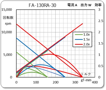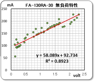 供給電圧が1.5voltの時: 回転数=8,846 rpm 電流= 178 mA |
