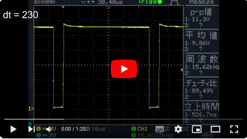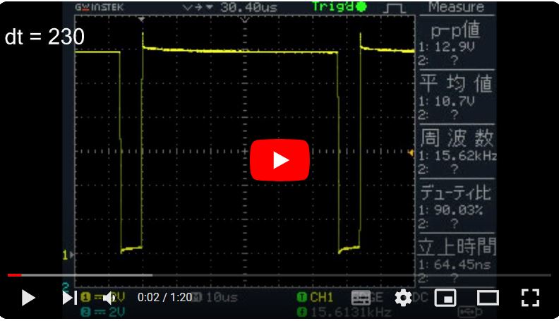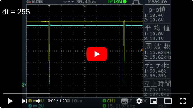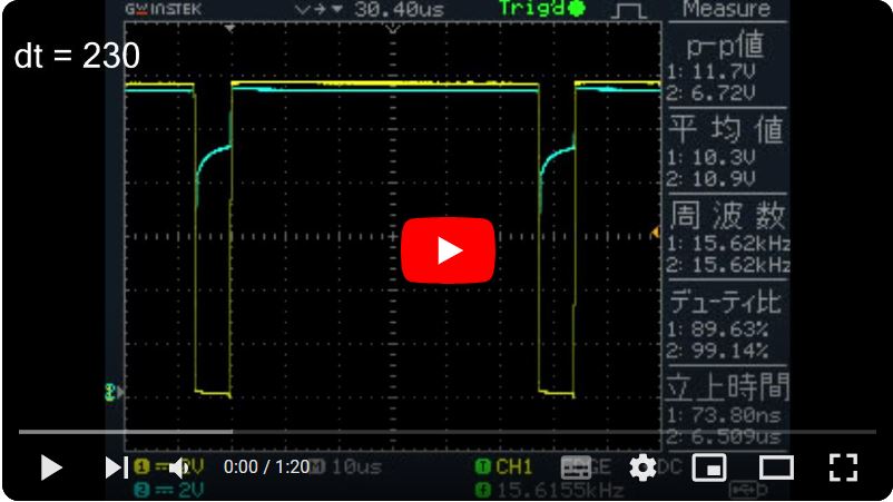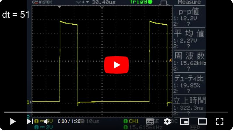 また、今回のデータより、小さなデューティ比領域でも確実に出力されていることも確認できた。