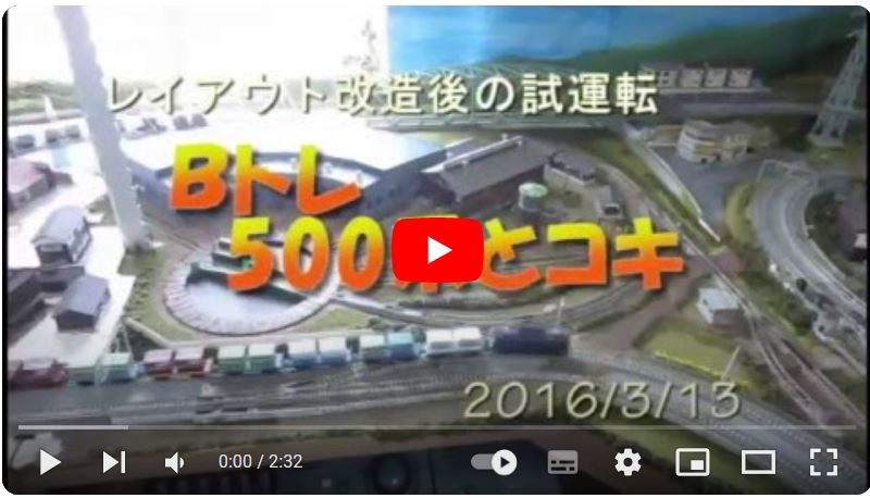 全体のレイアウト修正工作は、旋回路の試験走行が出来るまでに仕上がったので、試験走行を実施することにした。 車両は、Bトレの500系フル編成を使用した。