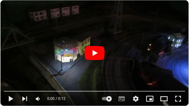 背の高いパチンコ屋郊外に移転したが、派手の照明はそのまま生かしている。 また、機関区横に造成された広場には、古い建物類と機関区の建物を使ってチョットした街並みをもうけているが、ここも照明を入れることにした。