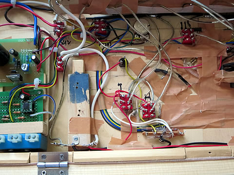 信号ラインについても、中間部に抵抗やダイオードの設置が必要なので、同様にラグ板を設置して配線を固定するようにした。