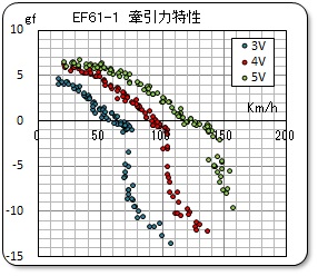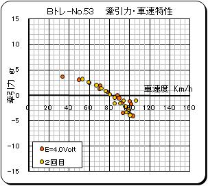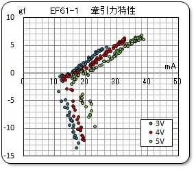 ● 牽引力特性は、単機走行でのスケールスピードが 80Km/h 程度と想定し、比較検討のため電圧4Volt で統一的に測定している。