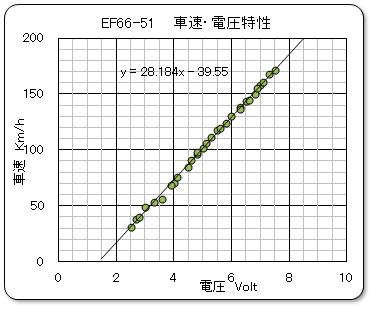 動力車の速度特性として、速度・電圧特性と電流・電圧特性を下に示す。 以前の測定データとは、少しずつ違ってきているが、性能劣化なのか、測定方法の違いなのかは分からない。 データの違いは、あまり気にしないことにする。