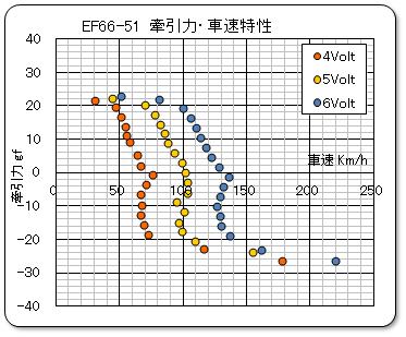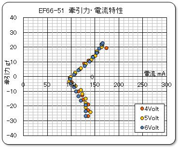 動力車の牽引力特性を測定する。電圧は 4.0 Volt で測定した。
