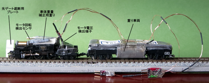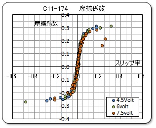 新しい測定装置で測定する。 測定実施: 2020/10/14 重り車両: 11.4(0.1)+65.3(0.7) グラム ()内は走行抵抗です。測定状況と詳細のデータは測定データのN増し その2 (2020/10/17)を参照下さい。