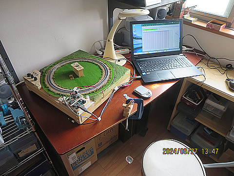 テーブルを回転させるのは、「動力特性測定のトライ」(2023/10/4)にて紹介しているように、回転するテーブルのエンコードパターンのパルスによって、測定の開始と終了が制御されているからです。要するに回転している事が条件なのです。