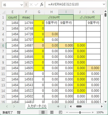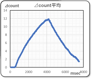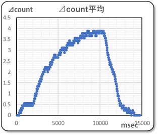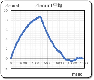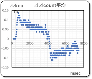 この差分平均のデータの差分をさらに取り、刧冂ount とし、これも前後の9個の平均を求めた。こうして得られた値をグラフに表示させた。