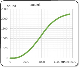 まず、単位系をSI単位系の基本単位に換算しておくことにします。ドラム径はφ17.5mm であり、エンコーダ1回転当たり 32×4 = 128 パルスなので、パルス数を距離に換算すると、1パルスで 0.430mm になります。距離の分解能はかなり向上しました。そして、SI単位系の基本単位であるmに換算すると、1パルス=0.000430 m となります。また、時間に関しては 1msec = 0.001 sec ですね。