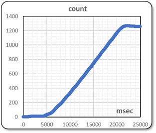 グラフに示すcount 、 冂ount 、刧冂ount 、の値は上記と同じ方法で計算しています。測定は連続して実施していますので、手で円盤を回した状態も記録されています。そこで、円盤が自然減衰する状態だけを切り出す必要があります。