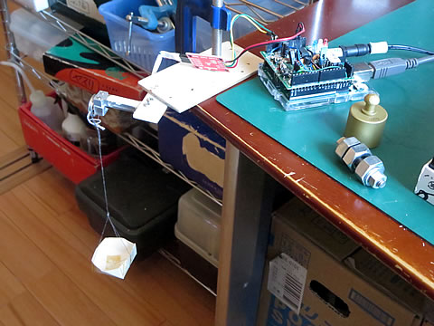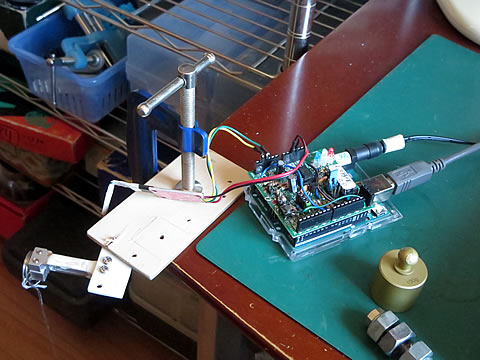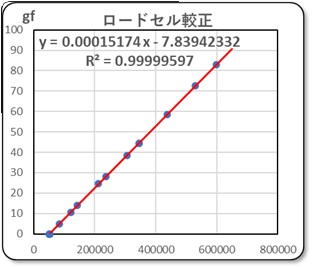 最初に、引張力測定のためのロードセルの較正作業から始めた。使用したロードセルは、今までいろいろ使い回しをしてきたので経歴が分からなくなってきたが、2016年にアマゾンにて入手したロードセルの様である。