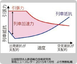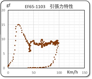 このグラフを理解するには、「鉄道模型で引出し特性を再現できるのか」(2026/3/28)で説明した機関車の引張力(=牽引力)の関係を知っておく必要があります。